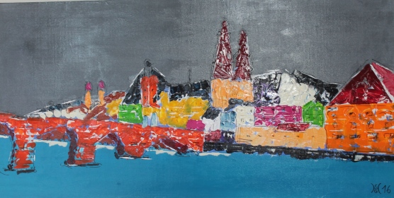 Georg Hüsch, Künstler aus Bad Kötzting, stellt ab 17.02.2016 eine Auswahl seiner Bilder in den Räumen des GMS Instituts aus. Die Inspiration für die Bilder, in erster Linie Köpfe und Stadtansichten, holt sich Georg Hüsch von Fotografien, die er dann frei interpretiert in Acryl auf die Leinwand bringt. Den besonderen Ausdruck erhalten die Bilder durch die intensiven Farben. „Die Farbe ist das, was berührt“ so Georg Hüsch, der seit seinem 17. Lebensjahr malt, zuerst Öl, Aquarell und Tempera, jedoch seit 2013 nun fast ausschließlich Acryl. Die Ausstellung „POLYCHROM 2016“ wurde am 17.02.2016, gemeinsam mit dem Künstler, offiziell eröffnet. Die Bilder können noch bis Juli zu den Öffnungszeiten des GMS Instituts besichtigt werden.